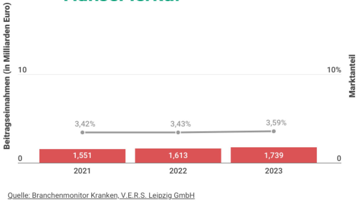 Die private Krankenversicherung hat sich auch 2023 als weitgehend krisenresistent erwiesen: So konnten die 25 größten privaten Krankenversicherer (Marktabdeckung: 97 Prozent) ihre Prämieneinnahmen im Vergleich zum Vorjahr um 2,8 Prozent auf 48,4 Milliarden Euro steigern. Dies geht aus dem aktuellen „Branchenmonitor 2024 Krankenversicherung“ hervor, den das Beratungsunternehmen V.E.R.S. Leipzig in dieser Woche veröffentlicht hat.
